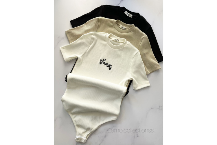 بادی تیشرتی آستین کوتاه زنانه جنس کبریتی گلدوزی دار