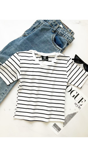 تیشرت کراپ زنانه راه راه سفید مشکی