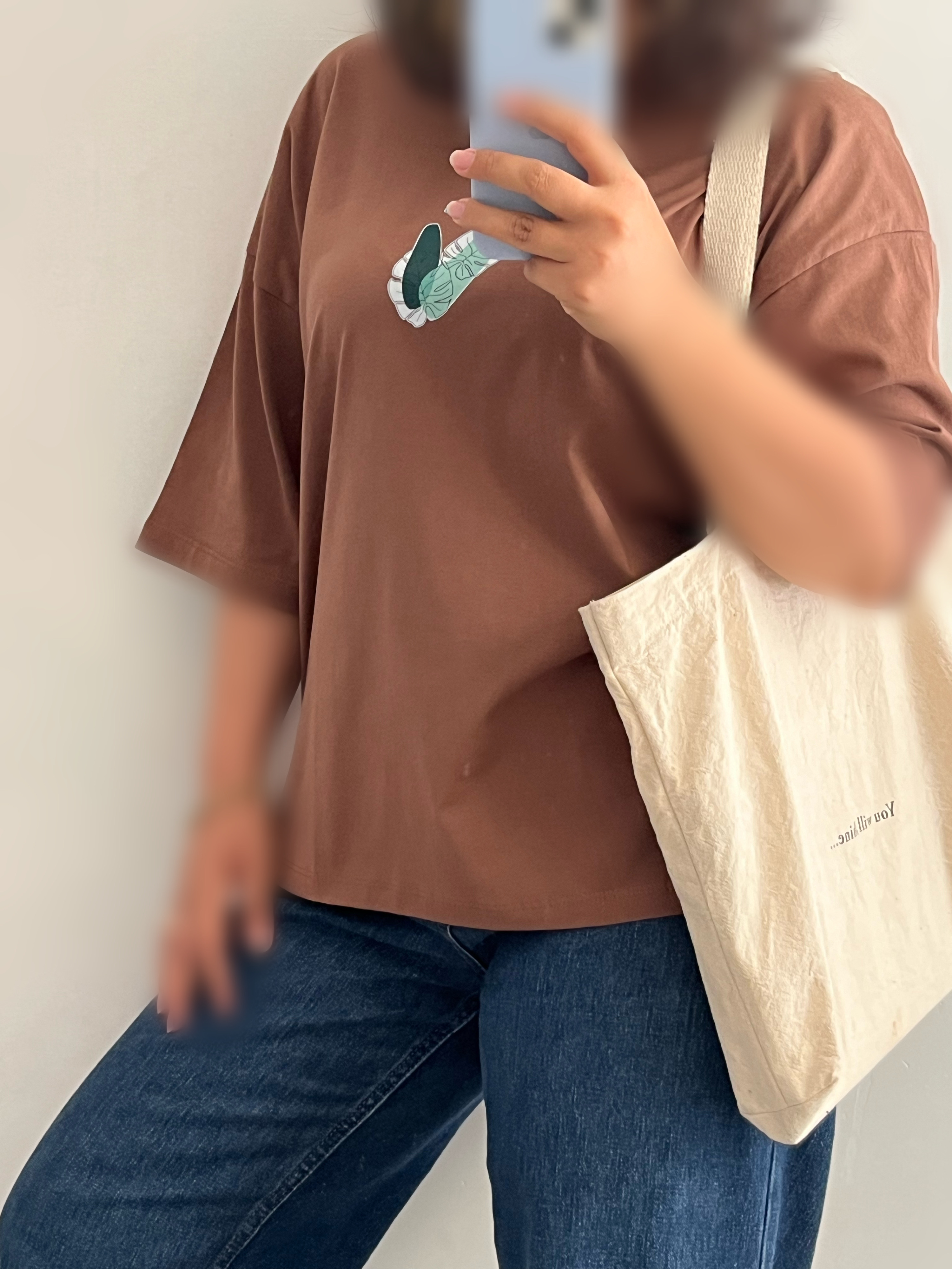 تیشرت زنانه مدل باکسی ساده جنس نخ پنبه