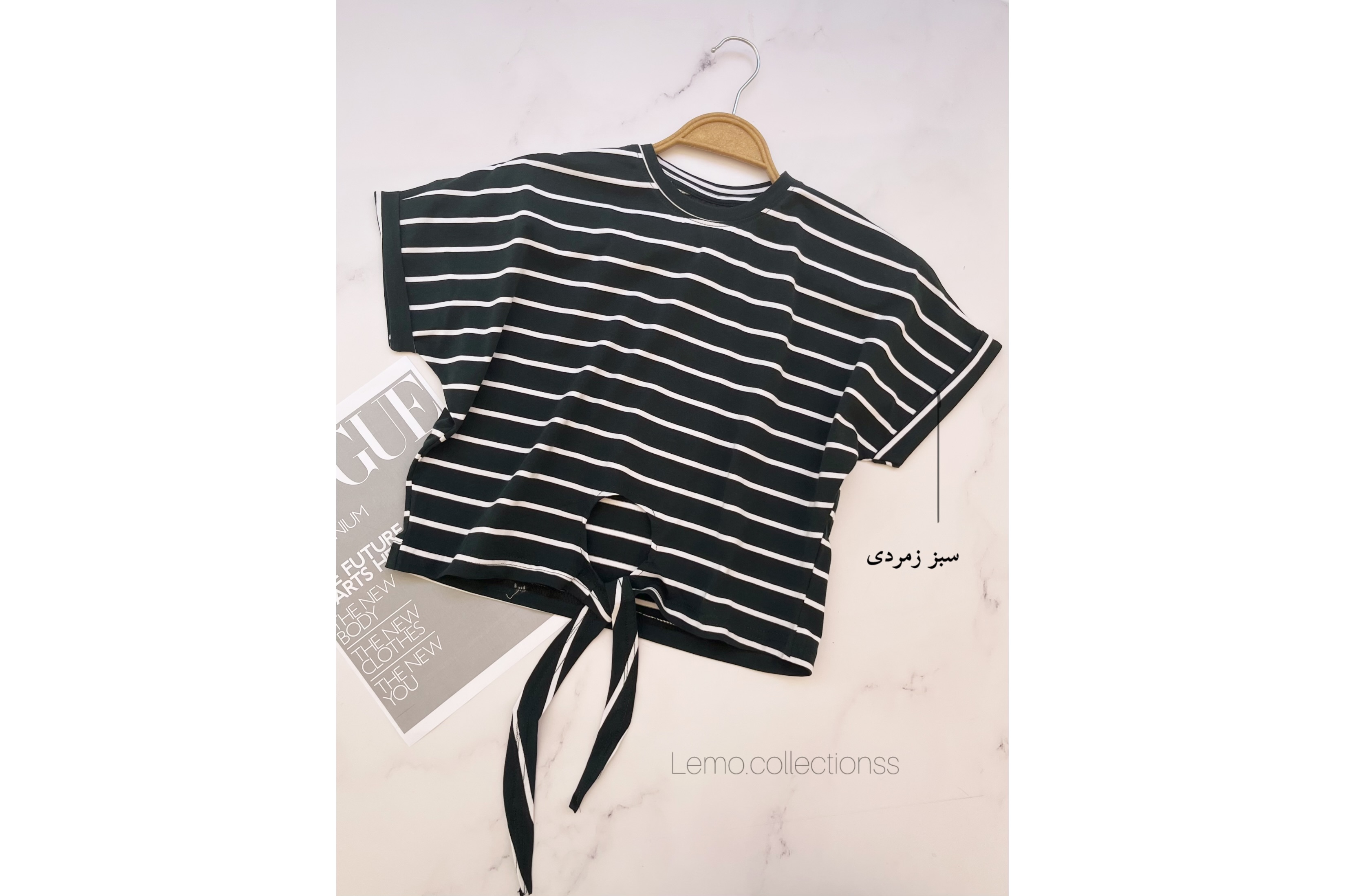 تیشرت کراپ زنانه راه راه سفید مشکی